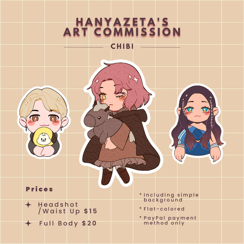 - I will send the sketch first. Once approved, I will ask for a first half of the payment and the rest of the payment when the commission is finished.
